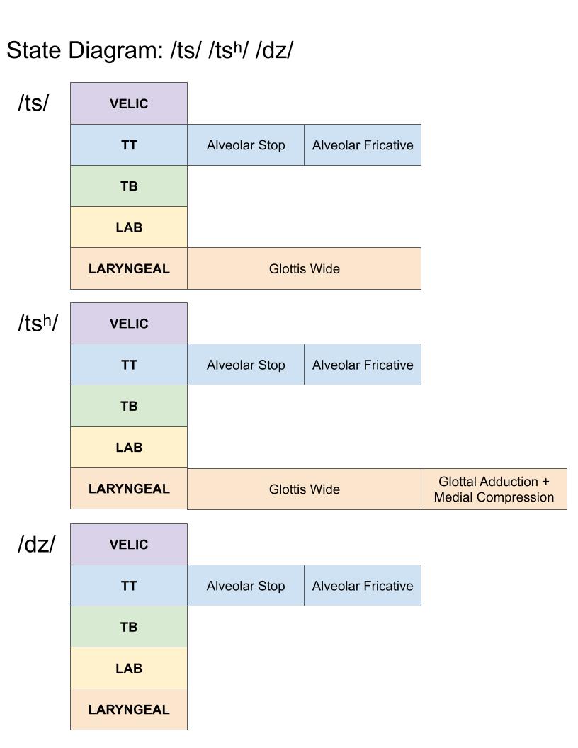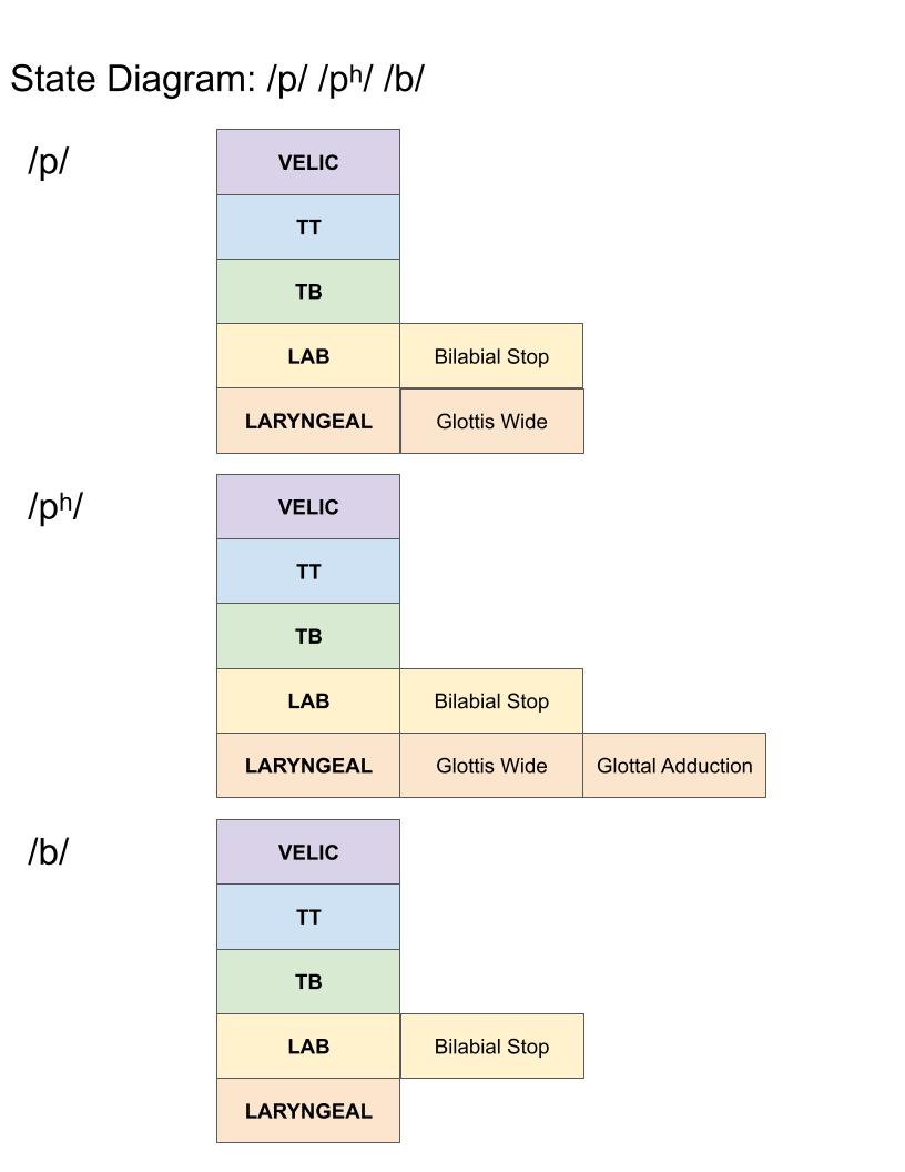 - Based on the VOT and phonetic descriptions from the literature, we can infer state timing diagrams for the